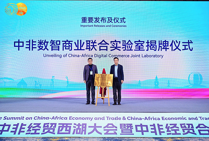 大会主论坛上,宇视科技总裁张鹏国与浙江工商大学代表共同为“中非数智商业联合实验室”揭牌,以宇视为代表的中国企业,将为中非数字商业化合作提供更加专业的服务。