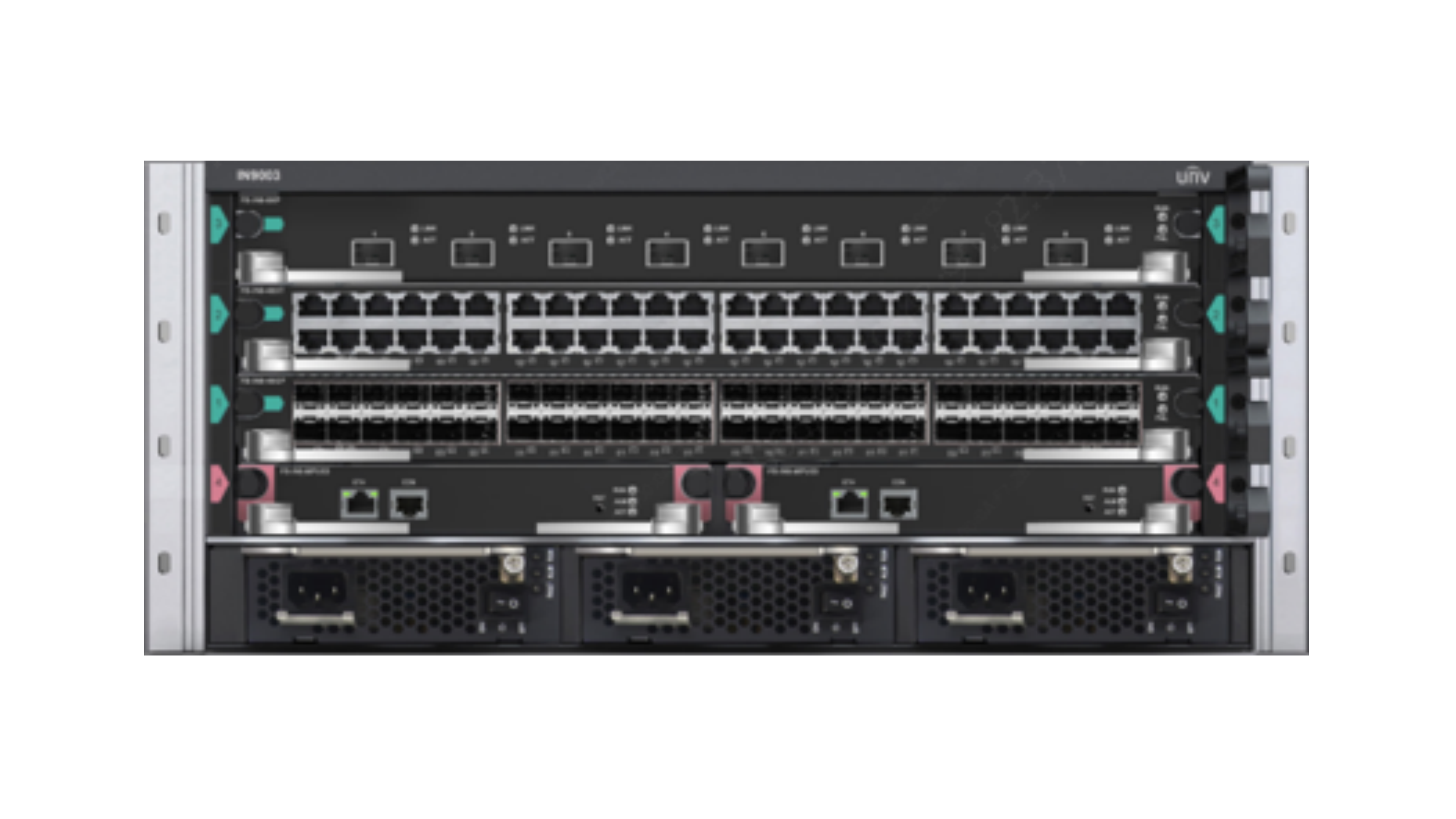 IN9000具有38.4T的背板带宽,为所有的端口提供无阻塞线速转发性能,具备强大的处理能力为构建可靠、稳定、高速的IP网络平台提供重要保障。